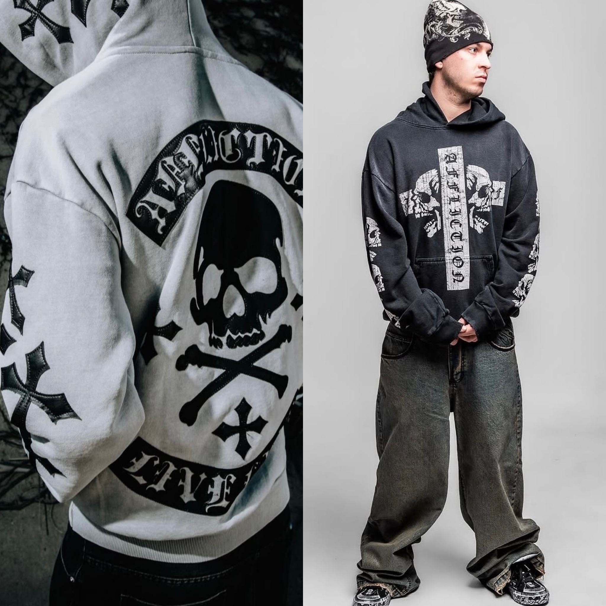Affliction Core Classics と American Customes 中心に、Black Labal の限定レーベルで構成されていたアフリクションとはだいぶ違い、 ゴシック・パンク・グランジ・ダークビューティーなどサブカルチャーを基盤に、Z世代・アルファ世代向けにデザインを変化させています。
