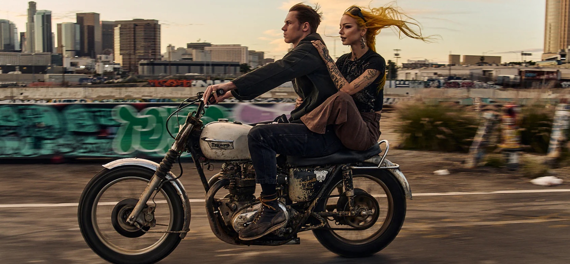 デザインは、スカル・バラ・ウィングといった精巧なグラフィックにラインストーンや特殊な箔プリントを施し、「悪党」や「反逆者」のスタイルを強調しています。